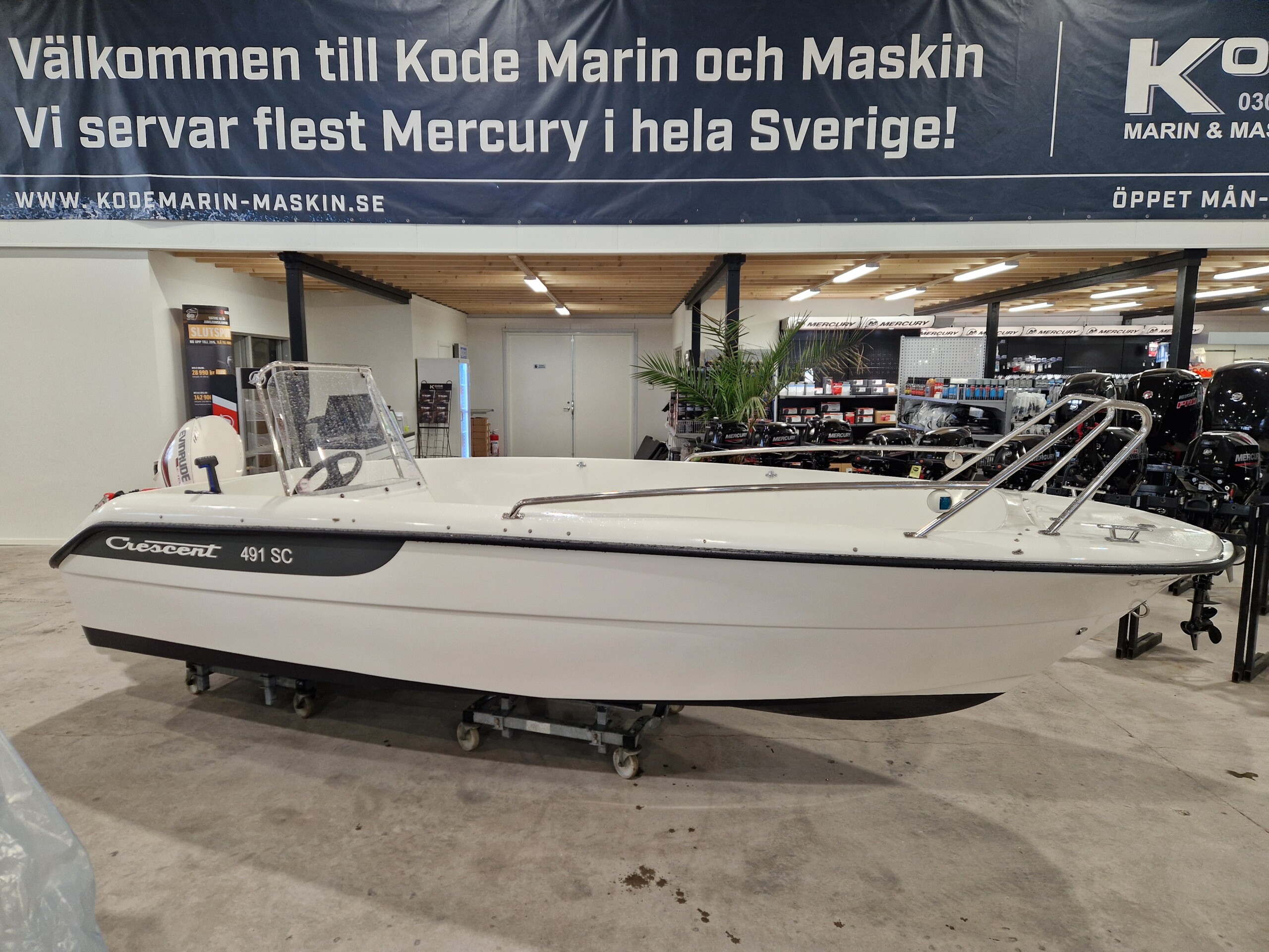 Standardutrustning: Badstege, badplattformar, signalhorn, öppningsbar dörr i skrovsida styrbord, diverse spöhållare, fenderkrokar, mugghållare, arbetsbelysning akterdäck, elektroniskt gas och växelreglage, styrbord pilotdörr, ankarbox, lanternor, fångststuvar, spöförvaring i sittbrunn, betes-och rensbord, självlänsande akterdäck, akterdörr, belysning av utsida hytt, fiskestation, SmartCraft logg/varvräknare, 12 V eluttag, kojer, stuvfack under koj, öppningsbart fönster till fördäck, kabinbelysning, förar – och passagerarstol, pilotdörr om styrbord, kabinbord, brandsläckare, trycksystem för färskvatten, skjutlucka i sidofönster, bord/dinette, diskho med kran, koloxidvarnare, brandvarnare, elektrisk & manuell länspump, hydraulisk styrning, vindrutetorkare babord och styrbord.