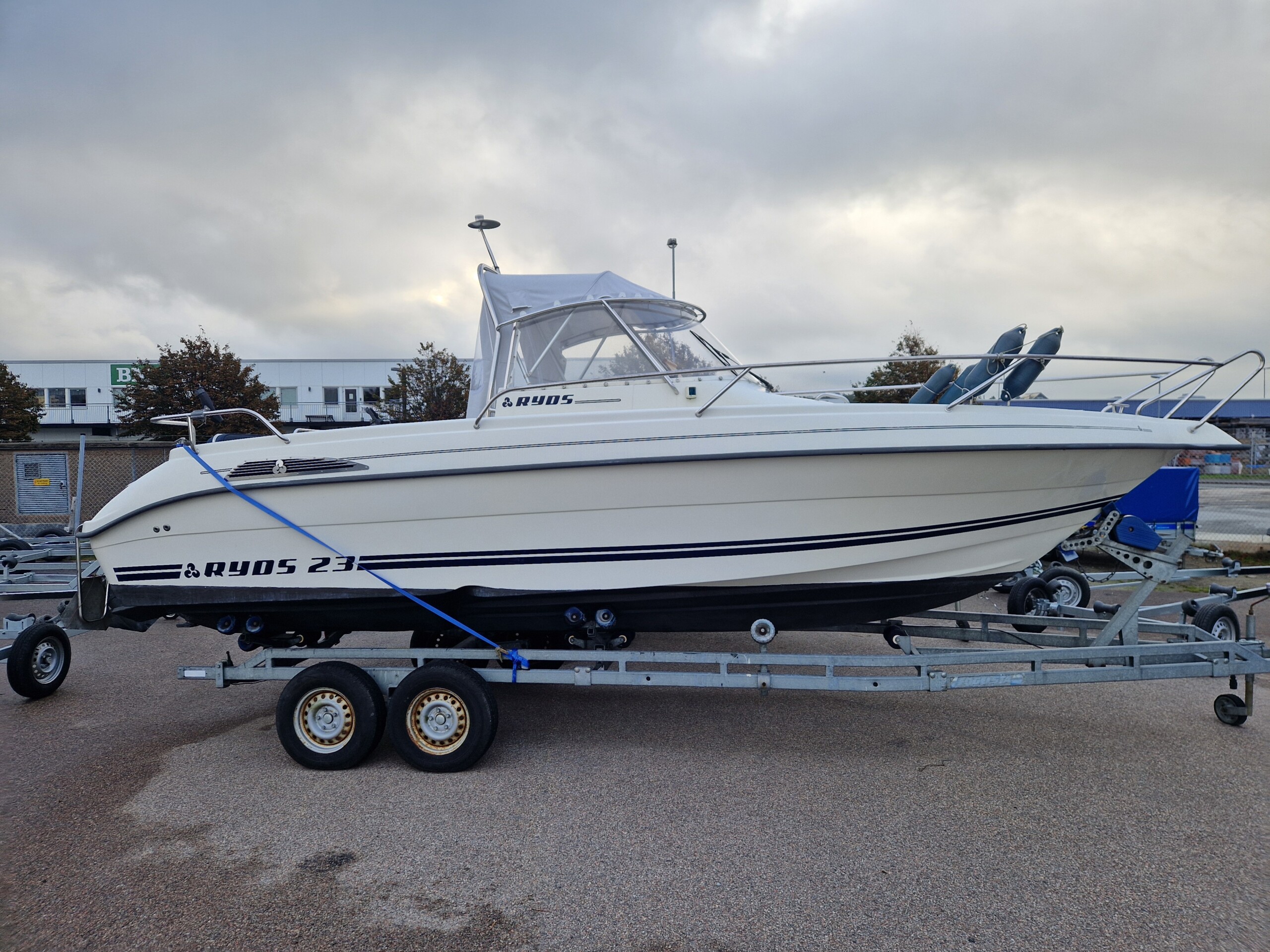 Utrustning: Lanternor, badstege, helkapell, rostfri propeller, hydraulstyrning, dubbla digitala motorinstrument, tankmätare, Garmin Echomap 72 (7 tums gps), flip-up-stolar, bord med soldynsats i fören, dynor i fören och aktern, flagga med fäste, spöhållare, .